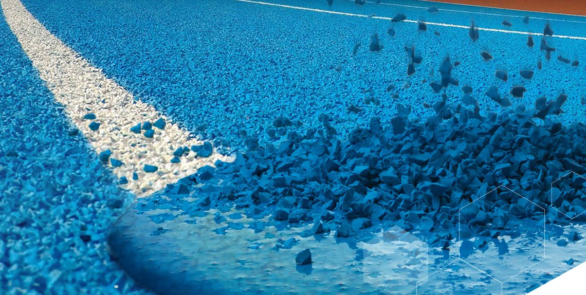 Rubber granules provide shock absorption and durability for sports tracks and athletic surfaces.